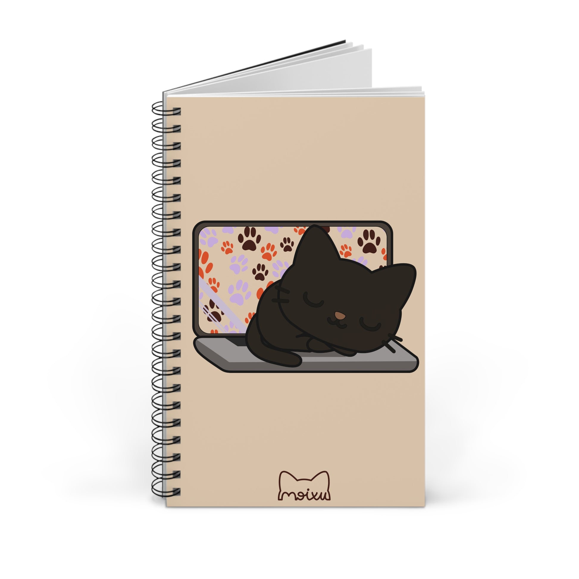 La libreta “Work in pawgress” ilustra la capacidad única de los gatos para dormir en absolutamente cualquier lugar, menos en su cama, y si encima lo necesitas para seguir trabajando, mejor.
